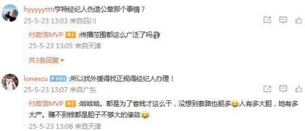 付政浩與網(wǎng)友互動(dòng)互動(dòng)提到,具體為何產(chǎn)生陰陽合同與亨特經(jīng)紀(jì)人偽造公章相關(guān)事宜有關(guān),都是為了省錢才這么干,沒想到套路也挺多。
