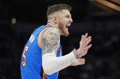 上半場,雷霆中鋒哈爾滕施泰因高效發(fā)揮,尤其拋投連續(xù)拿分,打了16分鐘8投7中,拿到14分5籃板2助攻1搶斷,正負(fù)值+25。