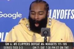 5月2日訊 NBA季后賽首輪G6,快船111-105擊敗掘金拖入搶七,賽后,哈登接受了采訪。