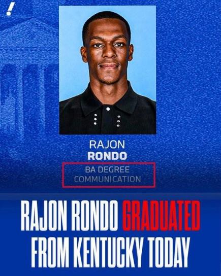 5月10日訊 據(jù)雅虎體育報(bào)道,前NBA球星拉簡(jiǎn)-隆多今天正式從肯塔基大學(xué)畢業(yè),獲得傳播學(xué)學(xué)士學(xué)位。