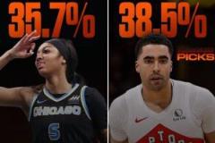 瓊泰-波特因?yàn)榇蚣偾蛞呀?jīng)被起訴,安吉爾-里斯本賽季最新的命中率只有30.3%!