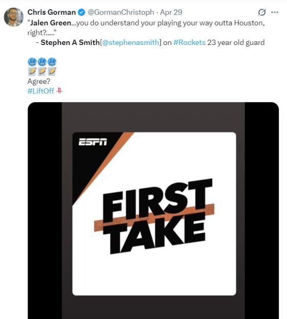 實(shí)際上這已經(jīng)不是斯蒂芬-A-史密斯第一次炮轟杰倫-格林,早在4月29日他就這樣評(píng)價(jià)杰倫-格林:“你們肯定已經(jīng)知道,這位23歲的后衛(wèi)應(yīng)該離開(kāi)休斯頓了。”