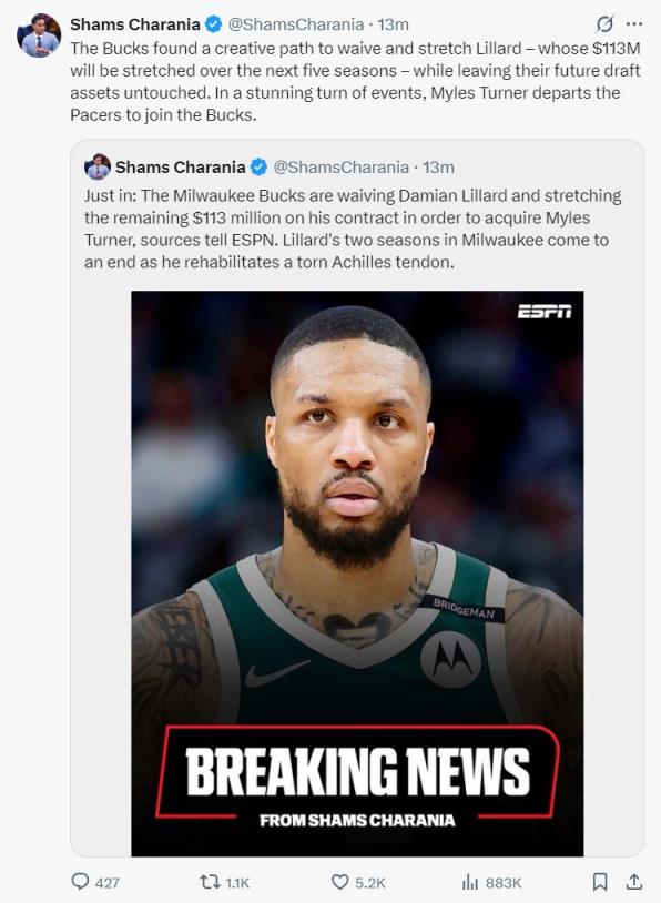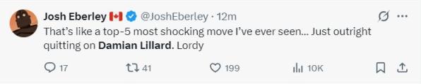 加拿大NBA記者約什-伊比瑞:這簡直是我見過最令人震驚的舉動(dòng),直接裁掉利拉德這種行為太離譜了。
