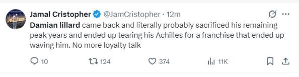 美記:利拉德因?yàn)楦靷麆荼徊玫袅?,他為了雄鹿?fàn)奚俗约菏S嗟膸p峰,可最終換來的是拋棄,從此聯(lián)盟再無忠誠可言。