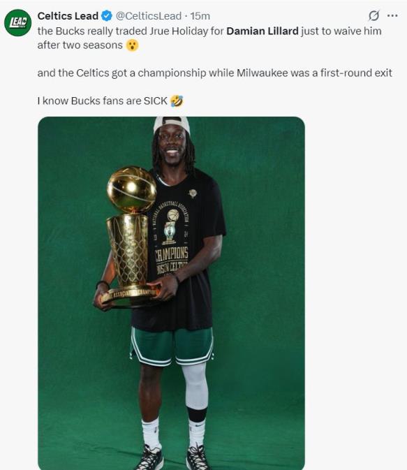 美媒HR:雄鹿用完了利拉德就直接扔掉了,嘲諷雄鹿管理層沒有人性。