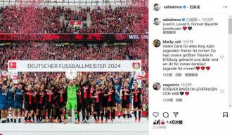 5月19日訊 哈維-阿隆索更新社媒,告別勒沃庫森。