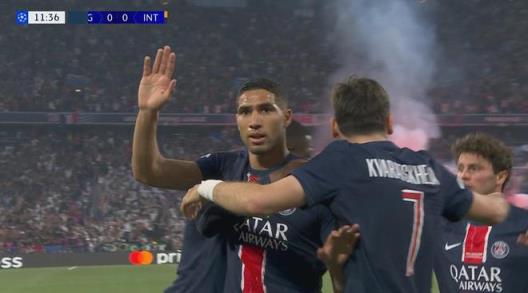 第12分鐘,巴黎前場(chǎng)傳遞打穿了國(guó)米防線,維蒂尼亞送出直塞球,埃杜再分球,助攻阿什拉夫推射入網(wǎng),攻破舊主大門后拒絕慶祝,巴黎1-0取得夢(mèng)幻開局。