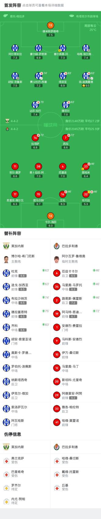北京時間5月25日西班牙足球甲級聯(lián)賽 聯(lián)賽 第38輪,萊加內(nèi)斯主場對陣巴拉多利德。萊加內(nèi)斯哈維-埃爾南德斯破門,揚-迪奧曼德破門,胡安-克魯斯破門。最終比分萊加內(nèi)斯 3-0 巴拉多利德。