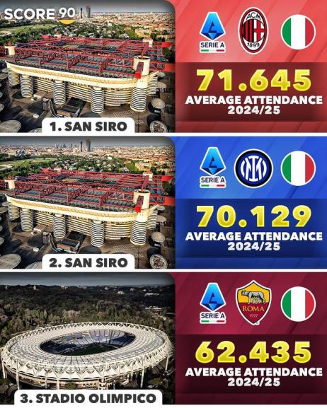 米蘭(71645)、國米(70129)、羅馬(62435)