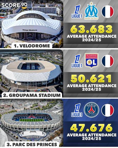 24/25賽季歐洲聯(lián)賽場均上座統(tǒng)計: