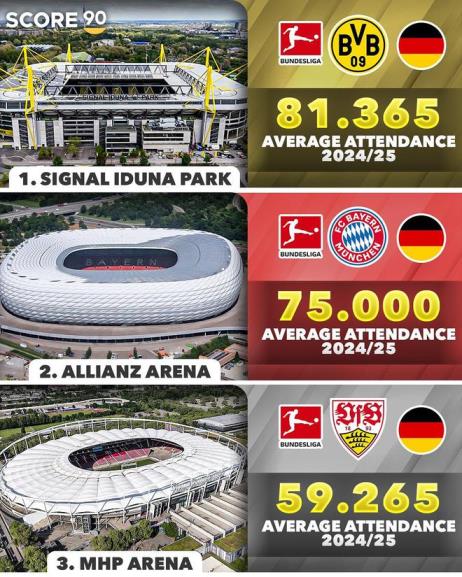 多特(81365)、拜仁(75000)、斯圖加特(59265)
