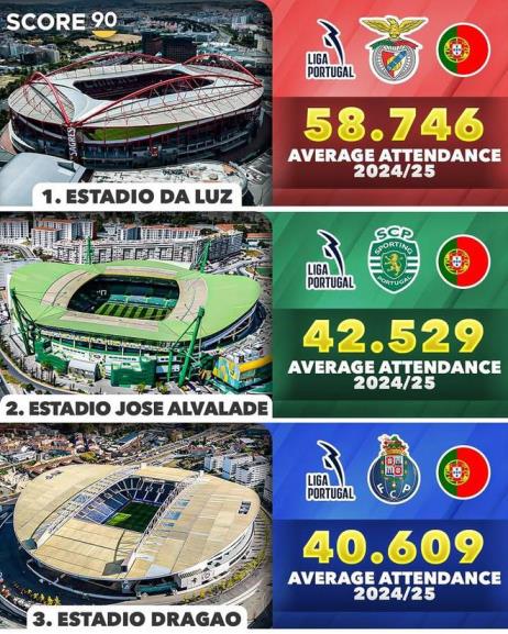 本菲卡(58746)、葡萄牙體育(42529)、波爾圖(40609)