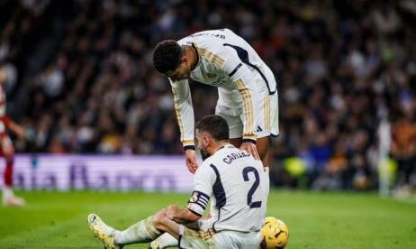 結(jié)局雖慘烈,但整個(gè)賽季其實(shí)都充滿艱難:傷病從開局就制約著安切洛蒂的排兵布陣。阿拉巴長(zhǎng)期傷退后,8月又折損卡馬文加。接著卡瓦哈爾和米利唐接連重傷,此后每月傷病潮接踵而至:9月8人、10-11月6人、2月7人、4月6人、5月9人...皇馬本賽季累計(jì)遭遇57次傷?。?1次肌肉傷病+16次創(chuàng)傷性傷?。婕?1名球員,僅莫德里奇和居萊爾全程保持健康。5人接受手術(shù),5人傷缺超百日,7人缺陣超50天,傷病數(shù)幾乎是上賽季(32次)的兩倍。對(duì)于已踢62場(chǎng)比賽(其中1月9賽)、曾僅間隔66小時(shí)就連續(xù)作戰(zhàn)的球隊(duì)而言,這樣的傷病潮令人絕望。
