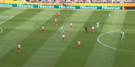 領先之后,馬競踢得更加從容,西雅圖海灣人也利用反擊與馬競周旋。第36分鐘,西蒙尼一度制造點球,不過VAR介入后取消了點球,半場馬競1球領先,他們在場上的優(yōu)勢非常明顯。
