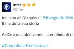 國(guó)米官方寫道:“昨晚在奧林匹克球場(chǎng),@博洛尼亞足球俱樂部贏得了其隊(duì)史第三座意大利杯冠軍。國(guó)際米蘭足球俱樂部向紅藍(lán)軍團(tuán)俱樂部致以敬意?!?/p>