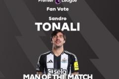 本場(chǎng)比賽托納利在開場(chǎng)2分鐘為球隊(duì)先拔頭籌,賽后他也當(dāng)選英超官方球迷票選全場(chǎng)最佳球員。
