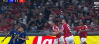 第24分鐘,馬奎爾頭球攻門,球彈地后被門將沒收