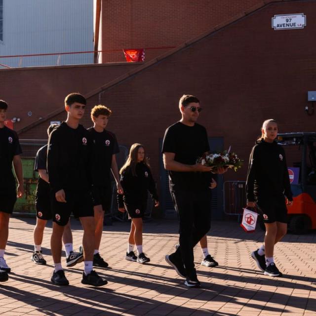 杰拉德與史蒂文-杰拉德足球?qū)W院的球員在安菲爾德主看臺外的紀念點獻上了鮮花。