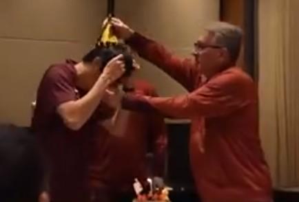 隨后大白(劉誠宇)帶領(lǐng)國足全體教練員和隊員為李磊唱生日歌。