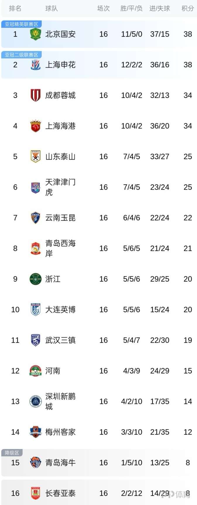 今晚中超第16輪全部結(jié)束,國安贏球繼續(xù)領(lǐng)跑,申花同分次席,下輪兩隊將上演榜首大戰(zhàn)。